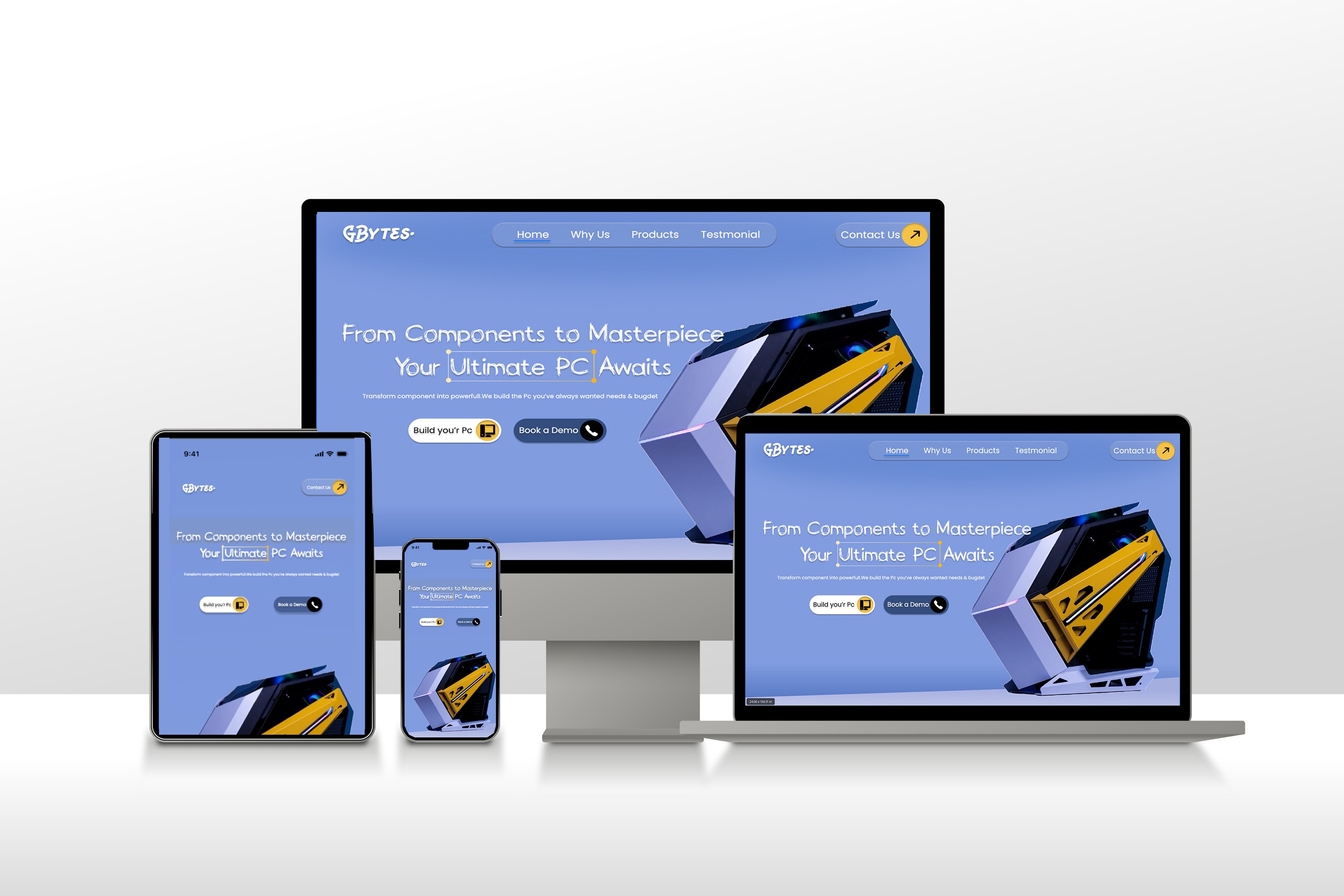 "Designing a responsive PC build shop website with an intuitive UI/UX for seamless customization and purchasing."